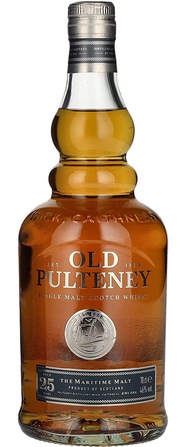 Old Pulteney 25 Years Old har som all annan whisky från Pulteney Distillery lagrats i närheten av Nordsjön som över tid sätter sin särprägel på denna åldrande skönhet.