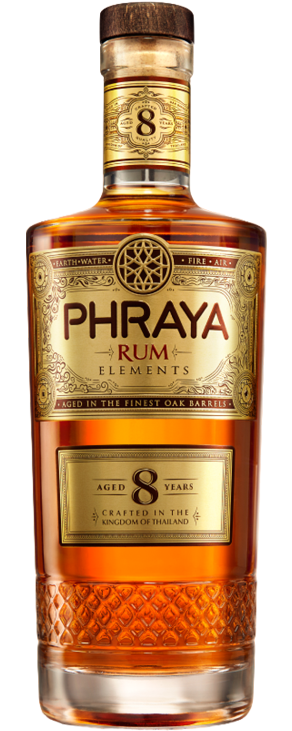 Phraya Elements 8 Years är ett hantverk i varje detalj – från sockerrör odlat i Kanchanaburi-provinsen till det tropiska klimatets unika påverkan på lagringen. Resultatet är en rom med djup karaktär och elegant komplexitet.