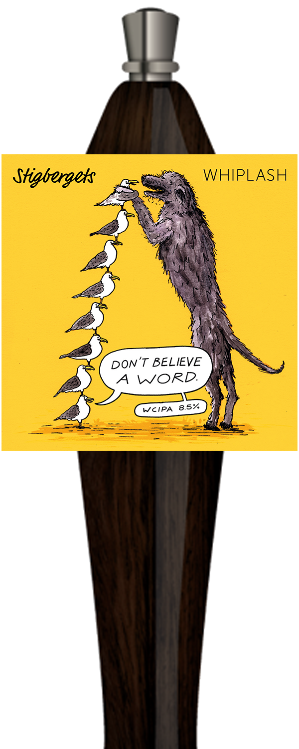 Ett samarbete mellan Stigbergets Bryggeri och Dublin-baserade Whiplash som landar i en modern tolkning av klassisk West Coast DIPA. Här möts traditionella amerikanska humlesorter och nyare nyzeeländska varianter i en klar, intensiv och aromdriven öl med tydlig stilkaraktär.